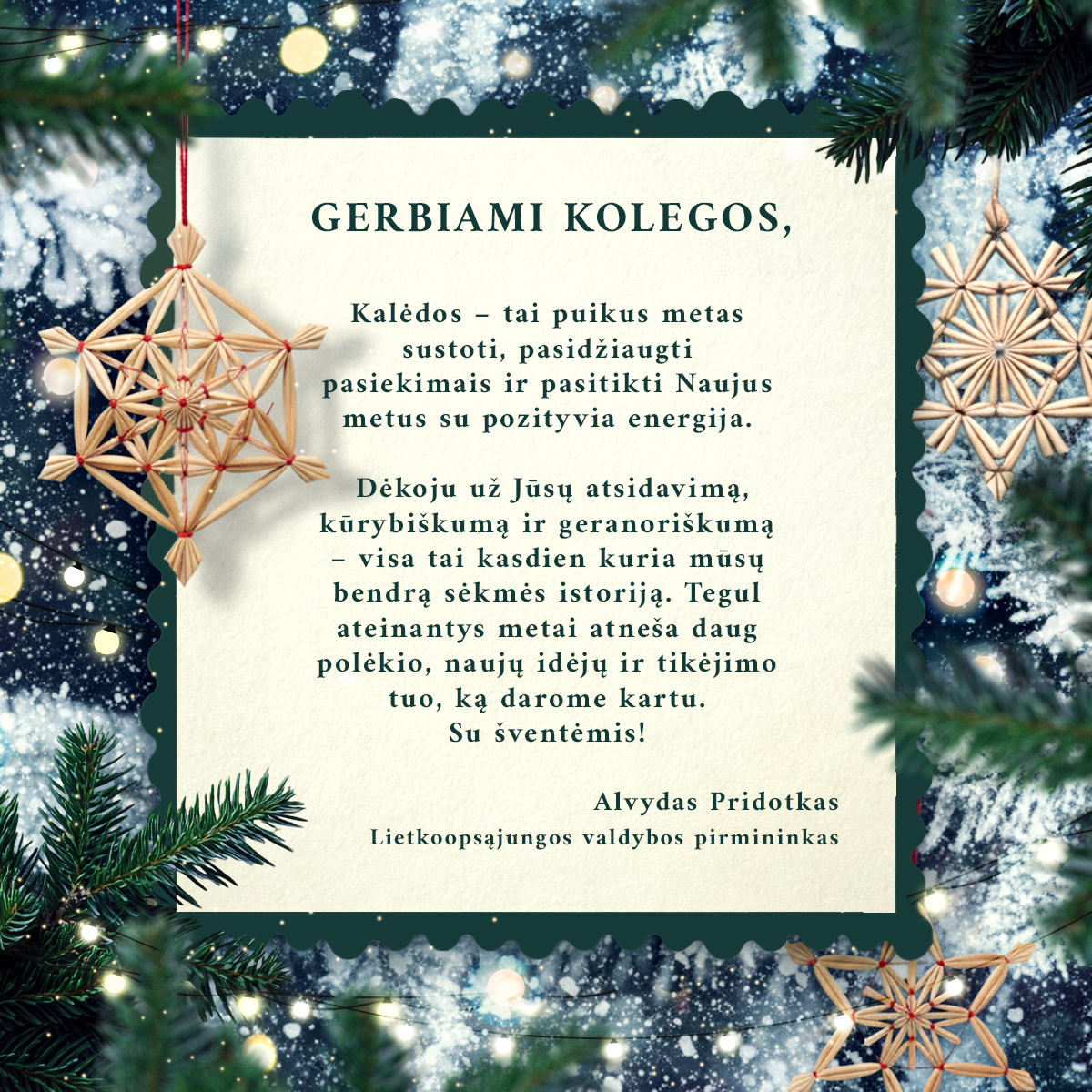 Pasitinkant 2026 metus Š.m. gruodžio 19 d. kooperatinės bendrovės Lietuvos kooperatyvų sąjungos nariai ir įmonių vadovai ...